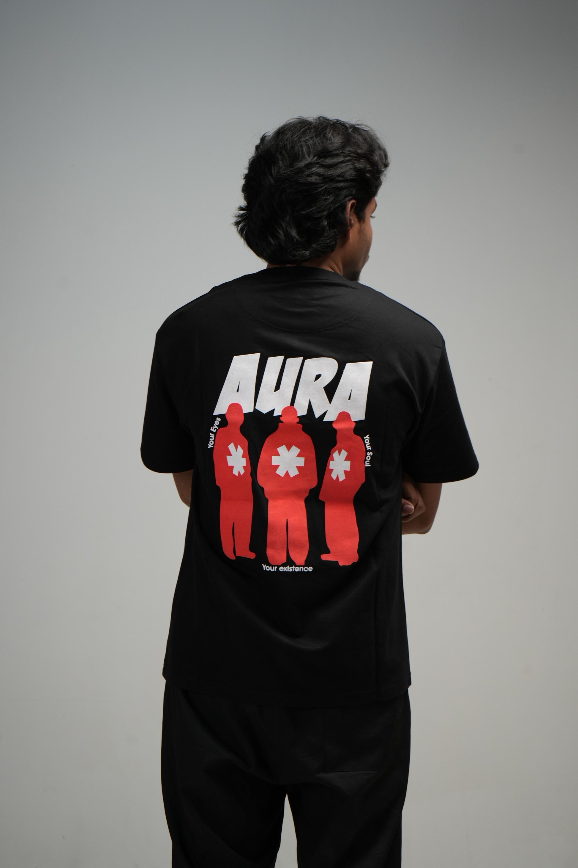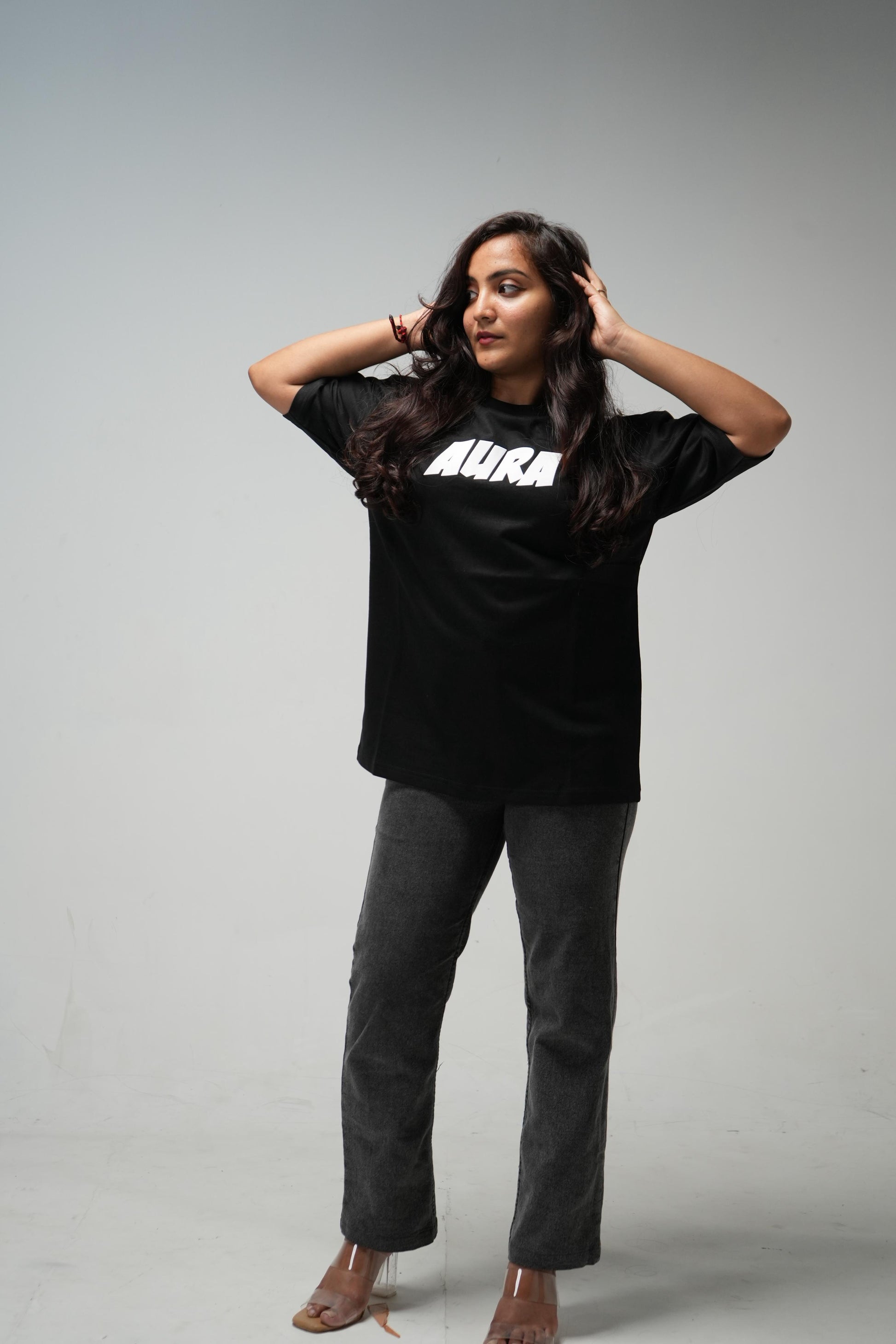 Aura Printed Oversized T-Shirt – Black | Puff Print